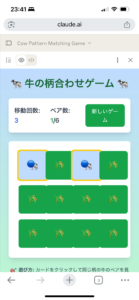 Posted in GameDevLeave a Comment on AIが作った癒し系ゲーム『牛の柄合わせ』で記憶力アップ!